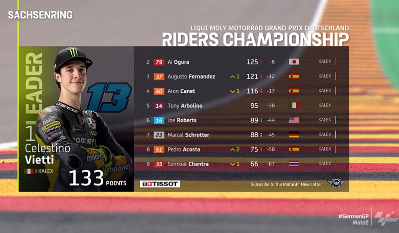 Résultats du Grand Prix d’Allemagne Moto2 au Sachsenring :