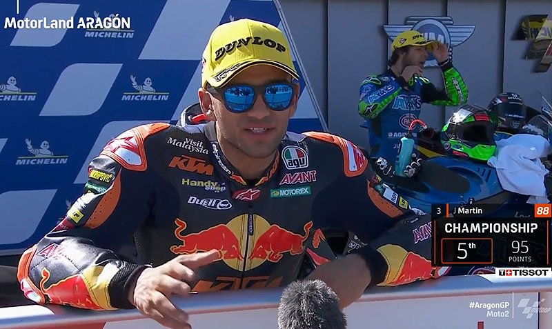 A peine descendus de leurs machines, les trois pilotes Moto2 qui ont terminé sur le podium lors du Grand Prix d’Aragón se sont confiés devant la caméra du site MotoGP.com.