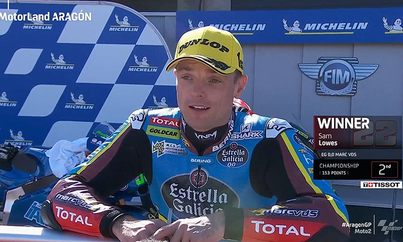 A peine descendus de leurs machines, les trois pilotes Moto2 qui ont terminé sur le podium lors du Grand Prix d’Aragón se sont confiés devant la caméra du site MotoGP.com.