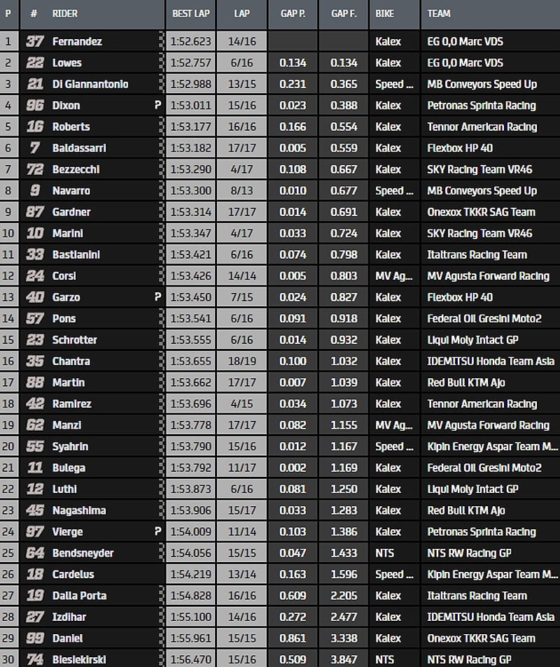 Classement FP1 du Grand Prix de Teruel Moto2: