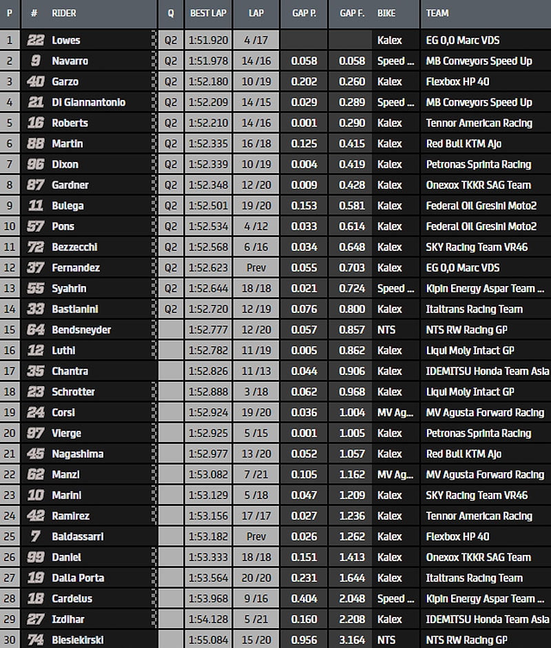 Moto2 Aragon-2 FP2 : chronos