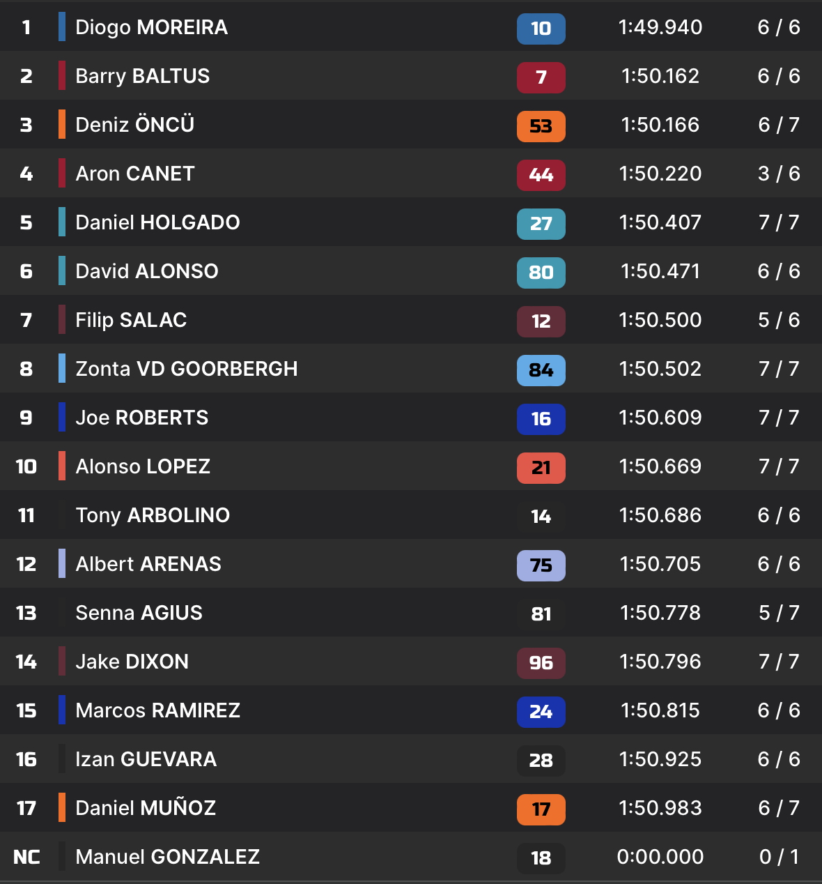 P2 1’59.335 Alonso Lopez 1’50.190 Deniz Oncu