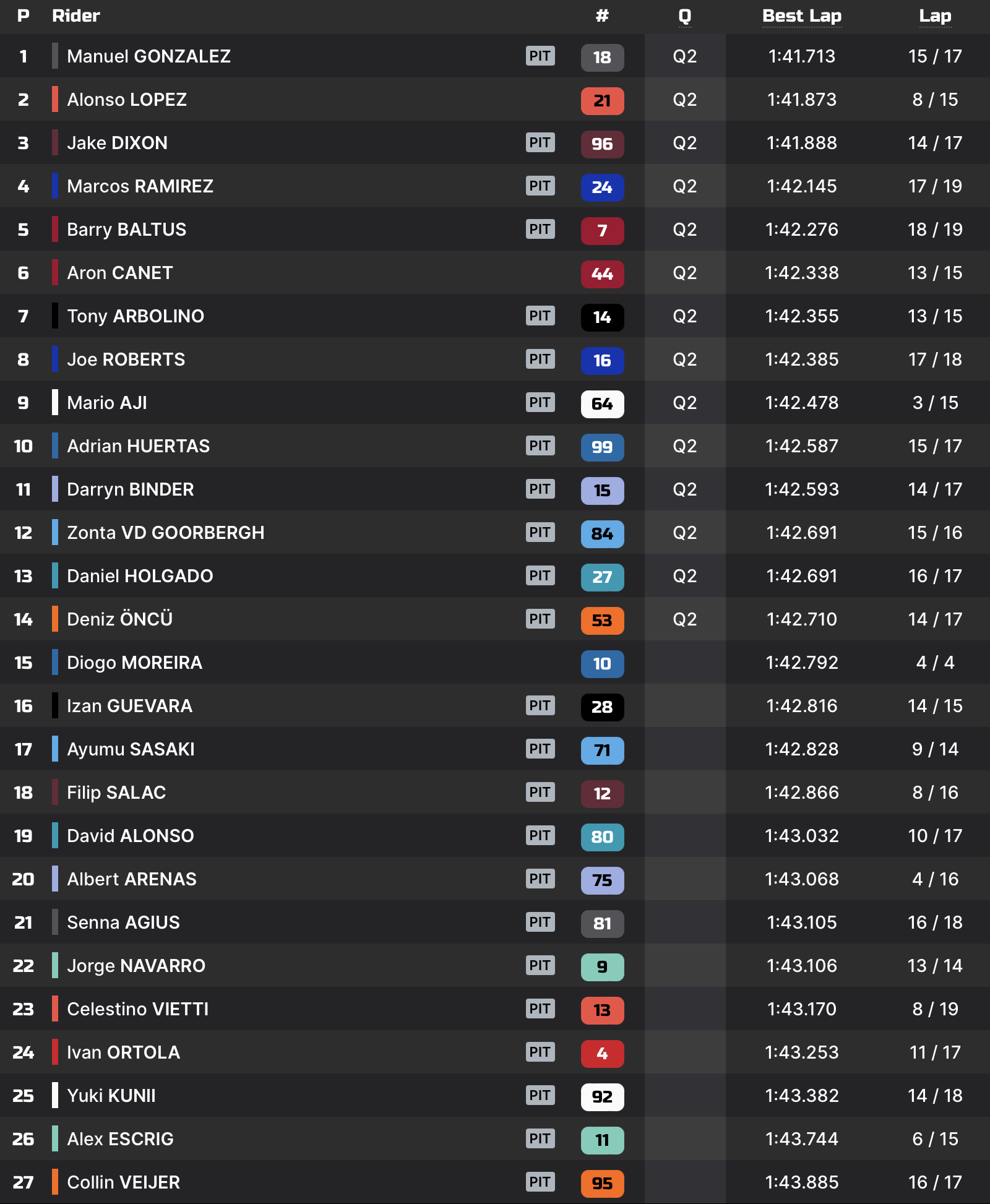 Practice (ex-P1) 1’43.172 Tony Arbolino 1’41.713 Manuel Gonzalez