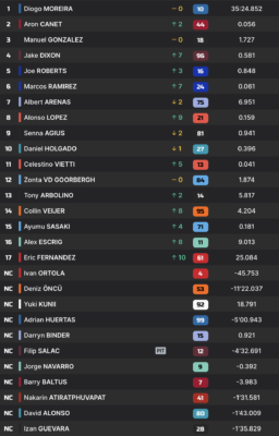 Le leader du championnat pointe alors à 3,6 secondes de la tête, sur le podium provisoire. Aron Canet n’a donc plus droit à l’erreur dans son duel avec Diogo Moreira. Toute perte de temps ou incident, doit être évitée.