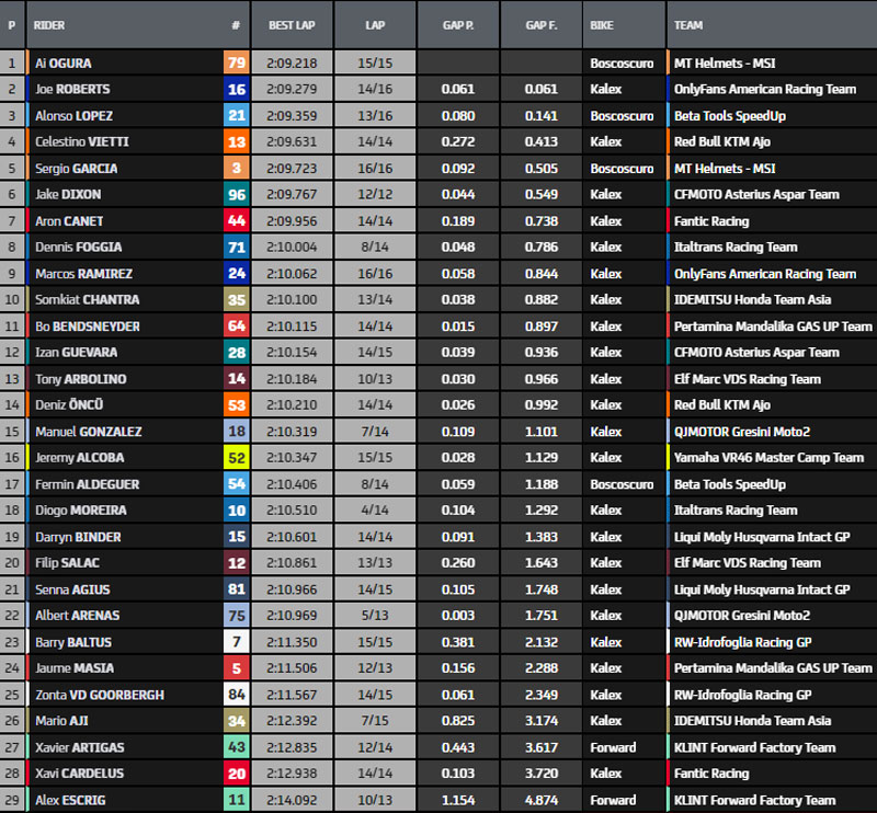 | Q2 | 2’09.432 Celestino Vietti | |