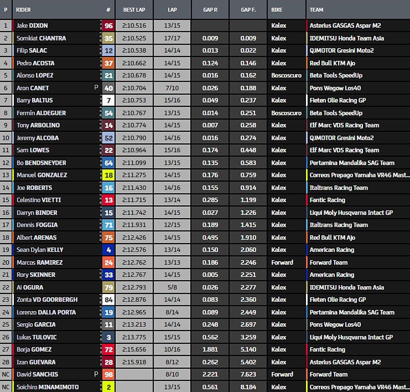 A 3min du finish, Dixon prend la tête des opérations en 2.10.516s devant Lopez, Canet, Baltus et Aldeguer.Dixon