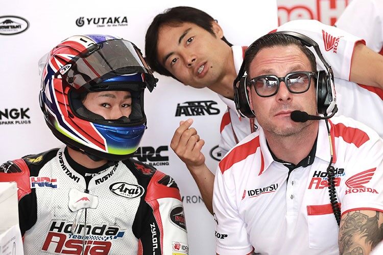 Mais Chantra et l’équipe d’Idemitsu ont mis 1 320 euros sur la table dans les 30 minutes et ont déposé une réclamation contre le verdict. Les « commissaires aux appels », en la personne de Peter Goddard et de Tom Williams (FIM), anciens pilotes de course, ont écouté attentivement les déclarations des personnes concernées. Le directeur de l’équipe, Hiroshi Aoyama, a également donné son avis. On rappellera qu’il a été Champion du Monde 250 cc 2009 sur Honda.