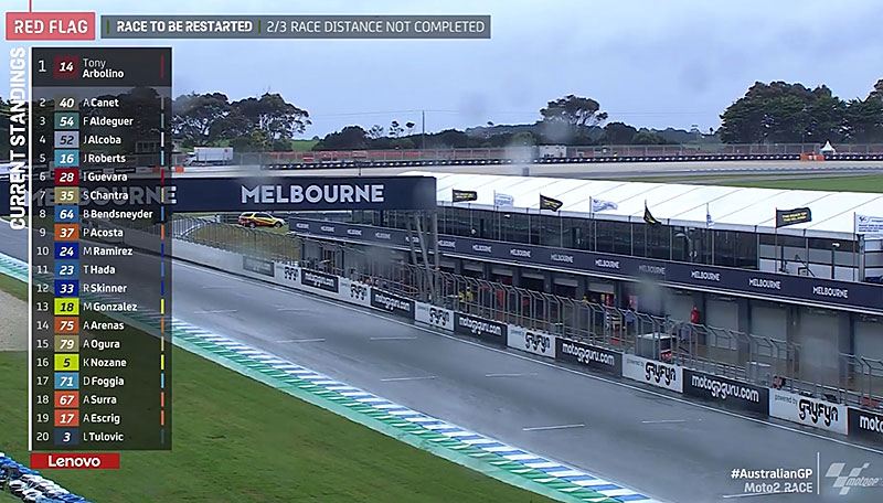 Moto2 Australie Course : Acosta chute avant le départ, Arbolino intouchable, et drapeaux rouges !