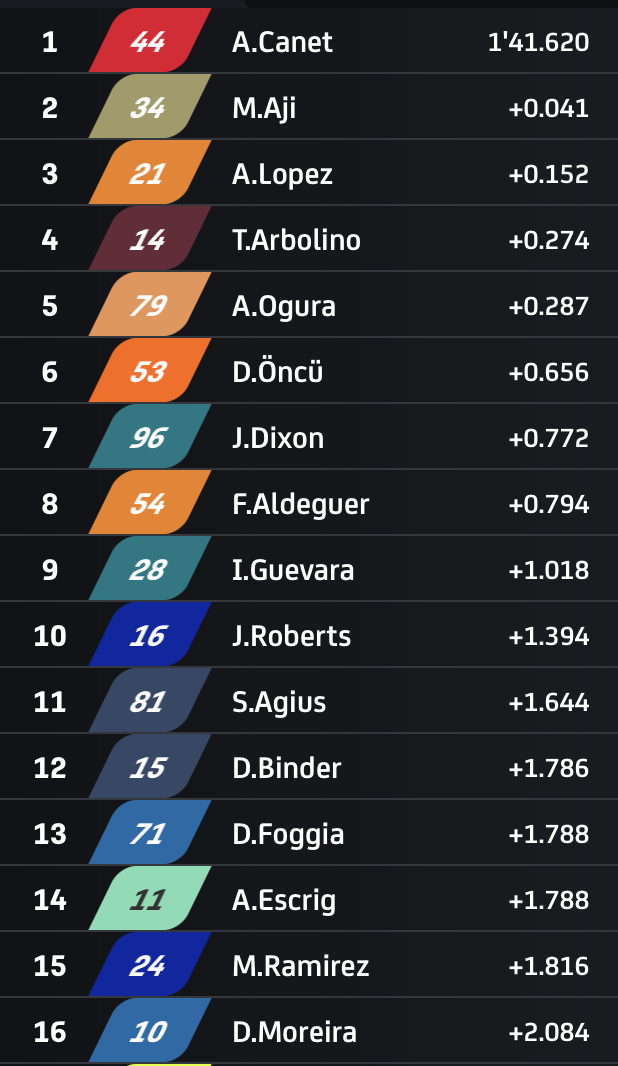 FP 1’32.794 Fermin Aldeguer 1’41.620 Aron Canet