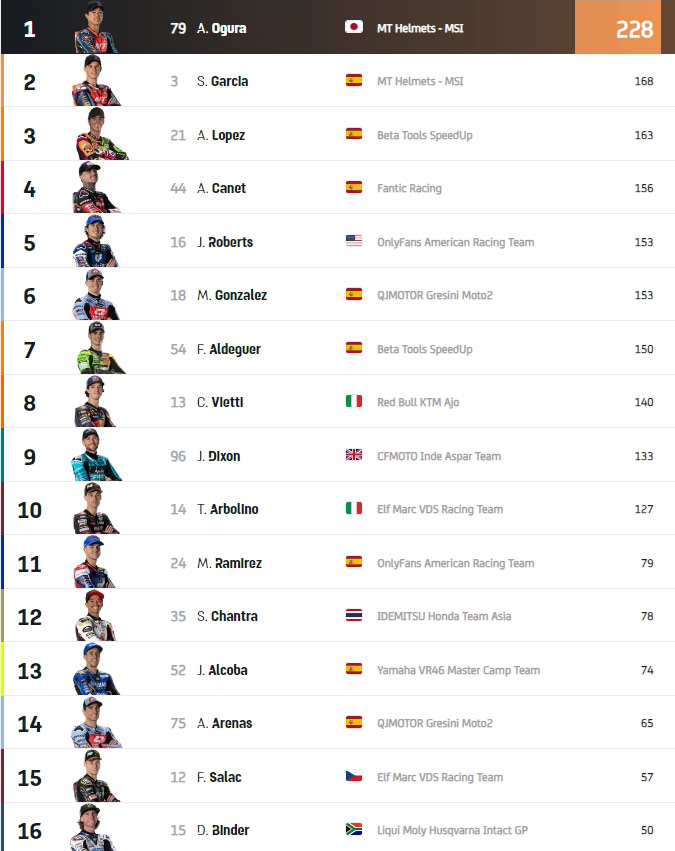 Le Moto2 entre dans le Sprint final de sa saison avec le Grand Prix d’Australie, disputé sur le célèbre circuit de Phillip Island. Un rendez-vous en général très apprécié par les pilotes, qui offrira une première opportunité à Ai Ogura de mettre fin à la course au titre. Alors qu’il dispose de 60 points de plus que son plus proche poursuivant, le Japonais pourrait être sacré champion du monde s’il achève le week-end avec au moins 75 longueurs d’avance sur l’ensemble des engagés.