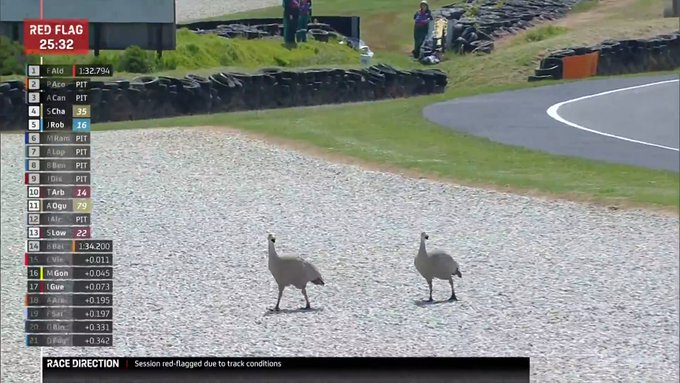 They're back and they seem to love #Moto2 machinery! 🐦 The session has been brought to a halt #AustralianGP 🇦🇺 pic.twitter.com/c55CSpU82B