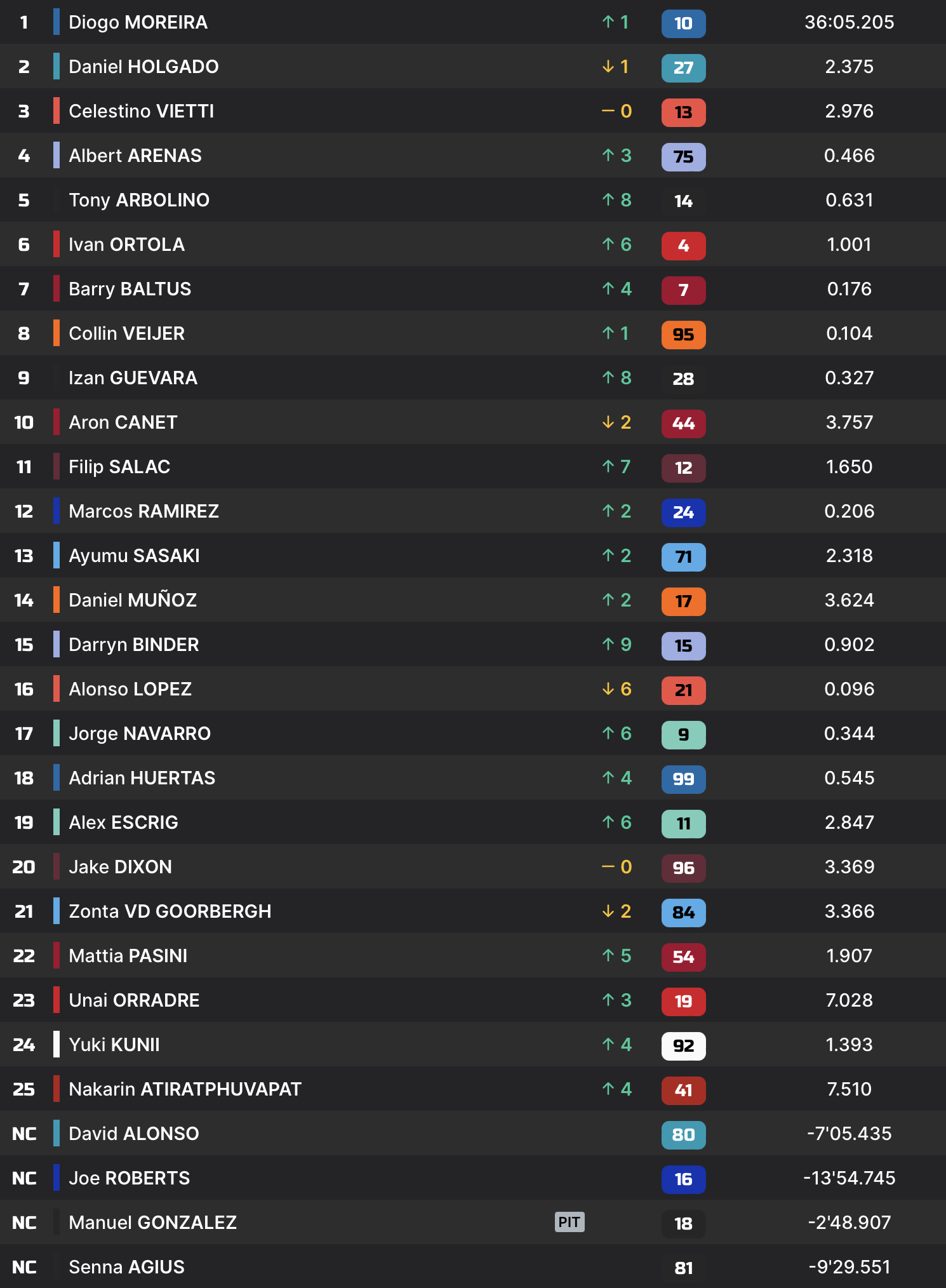Relégué en 14e positon, il reprend soudainement de la vitesse, mais se trouve maintenant derrière son principal rival au classement général, Aron Canet. Quelques tours plus tard, le problème revient. Cette fois, il est contraint à l’abandon. Ce zéro pointé, alors qu’il entretenait des espoirs de victoires, pourrait peser gros dans la balance au moment du décompte final.