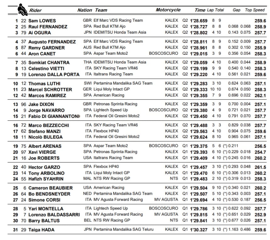 Moto2 – Autriche : Résultats Qualifications