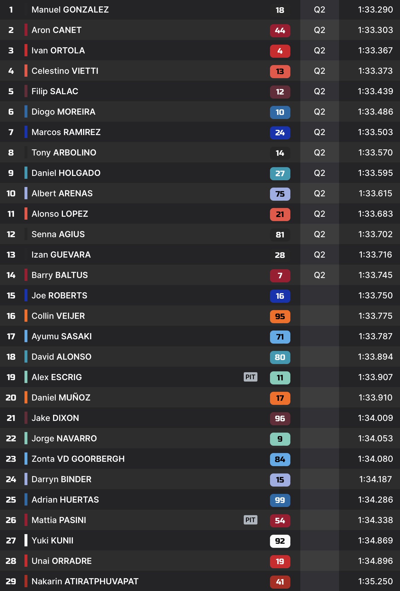 | P1 | 1’33.943 Ai Ogura | 1’33.290 Manuel Gonzalez |