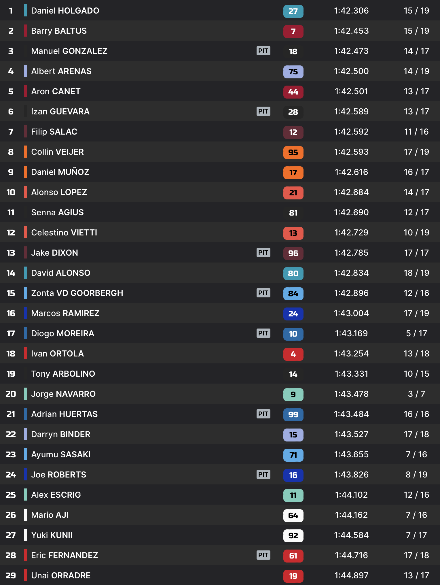 | Q2 | 1’42.003 Aron Canet | |