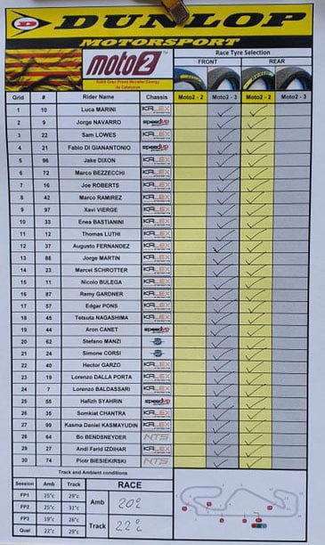 Il s’est de plus donné toutes les chances de conforter cette avance en obtenant la pole position du Grand Prix de Catalogne et le meilleur temps du warmup ce matin. Il s’élancera donc devant un Jorge Navarro (Speed Up, +Ego Speed Up) peu dangereux au championnat, mais un Sam Lowes (Kalex, EG 0,0 Marc VDS) à prendre en considération, ne serait-ce que par sa quatrième place au classement général ou la domination qu’il a montrée lors des essais libres.