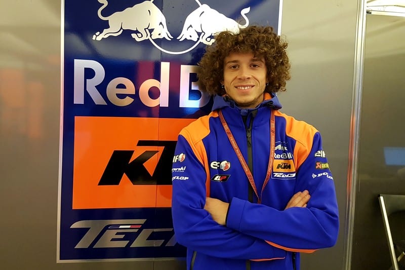 Une saison pour apprendre, une saison pour gagner. Marco Bezzecchi avait presque fait sienne la règle de son mentor Valentino Rossi, puisque après une première saison en Moto3 en 2017, la saison d’après avait vu le jeune Italien remporter ses premières victoires et jouer le titre. Finalement troisième du Championnat, il est arrivé en Moto2 l’an passé au sein du team Tech3, soutenu par KTM.