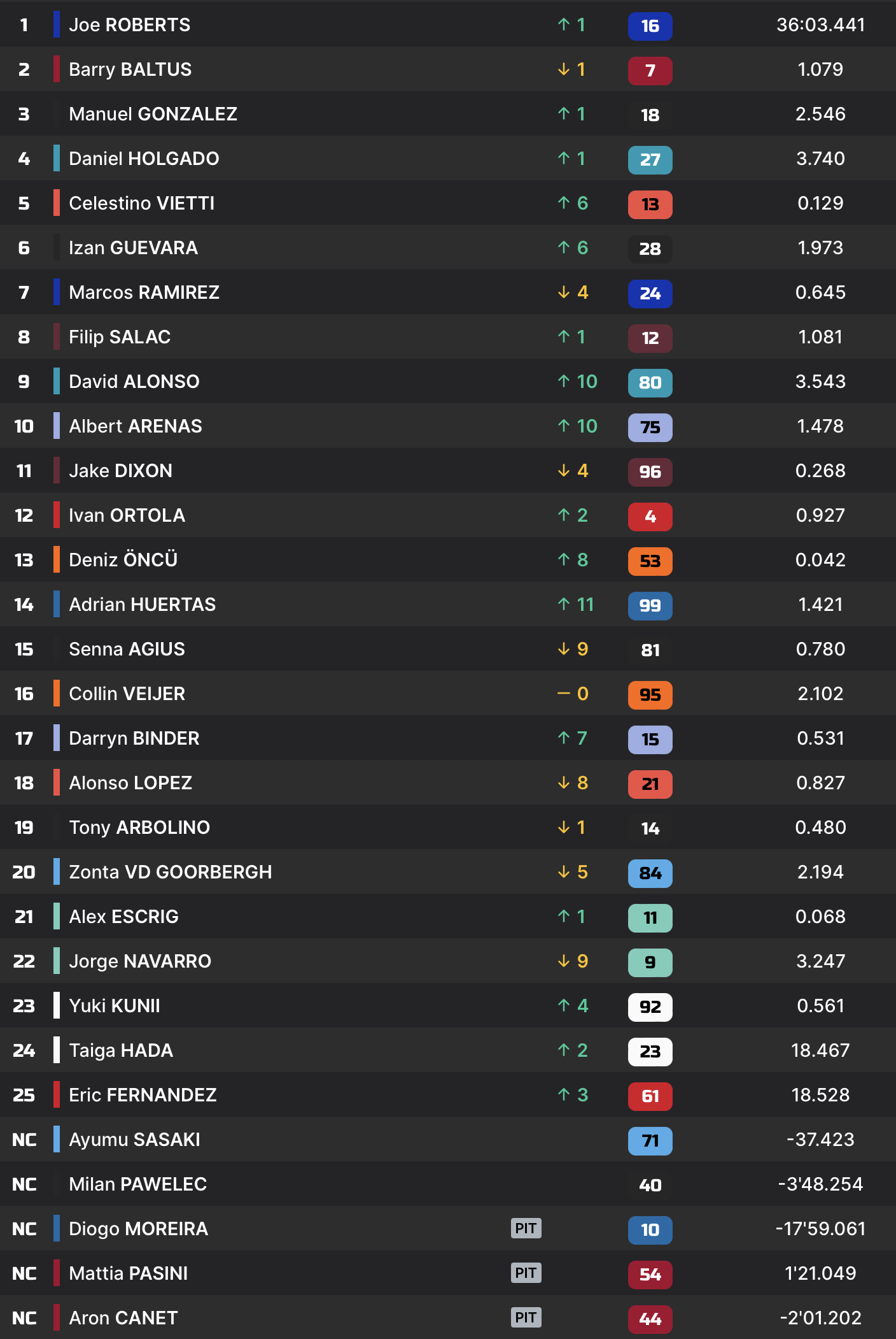 Pas de Brabançonne la veille de la fête nationale belge, mais une excellente opération au championnat, puisque Barry Baltus, en plus de reprendre quelques points au leader, se promeut au troisième rang du classement général. Un résultat bien aidé par les abandons de Diogo Moreira et d’Aron Canet. Pour Manuel Gonzalez, le bilan est encore plus réjouissant, puisqu’il compte désormais 25 points d’avance sur son compatriote.