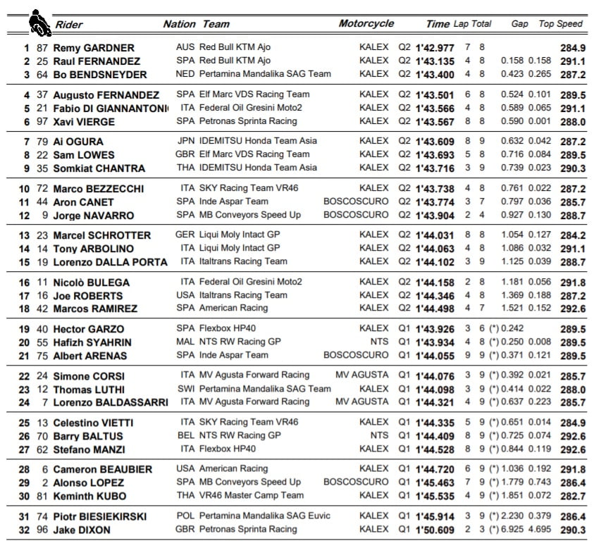 « C’est incroyable, tout découle du travail que nous avons effectué auparavant. Nous avons fait en sorte ce matin d’être dans les 14 premiers [sic]. Nous avons assuré un tour, et ensuite nous nous sommes concentrés sur notre rythme, car la course promet d’être longue et il va falloir être vigilant sur le pneu arrière. Nous ne savions pas trop à quoi nous attendre pour les qualifications, mais au final le tour a été parfait, j’ai tout donné. »