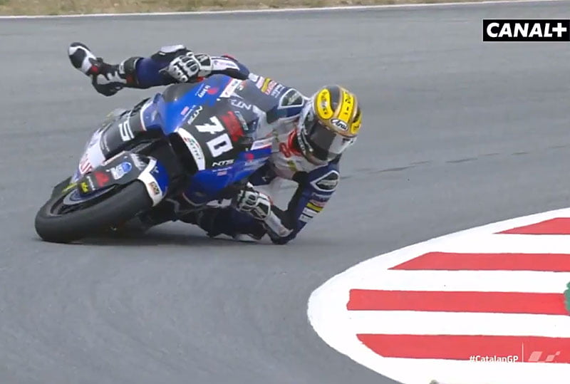 Il y a des jours où on peut se dire « tiens, j’ai eu de la chance ! ». C’est sans doute le cas aujourd’hui pour Barry Baltus dont la NTS du team NTS RW Racing GP a fait preuve d’un violent dribble ce matin lors de la FP1 des Moto2 sur le circuit de Catalunya–Barcelona…