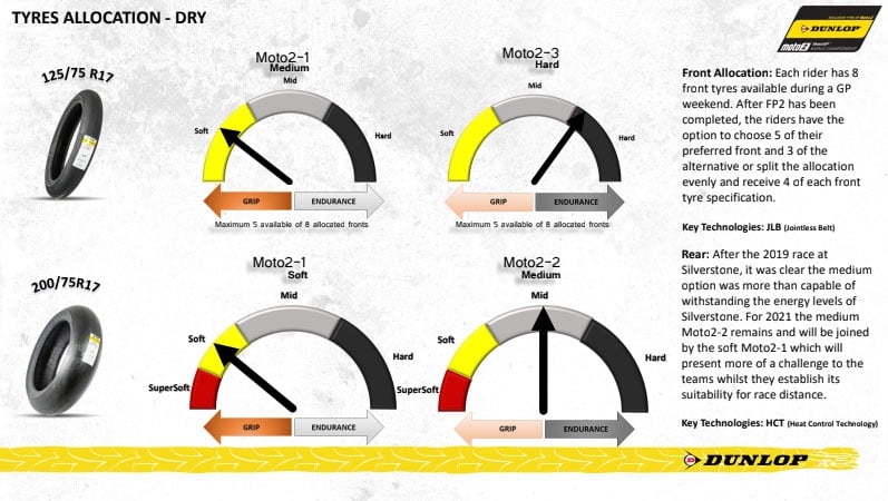 En 2019, le pneu arrière Moto2-2 a été le pneu gagnant de la course, performant sans aucun problème et sans aucune perte. En 2021, les équipes disposeront des pneus Moto2-2 et Moto2-1.