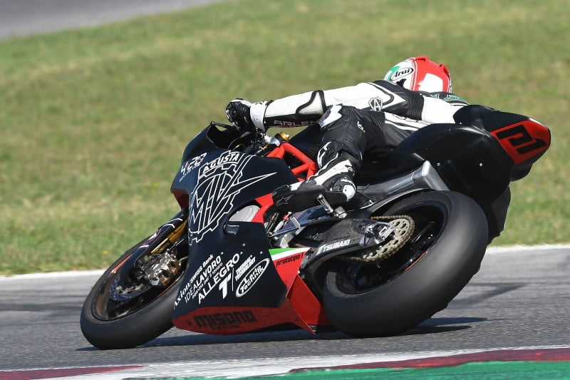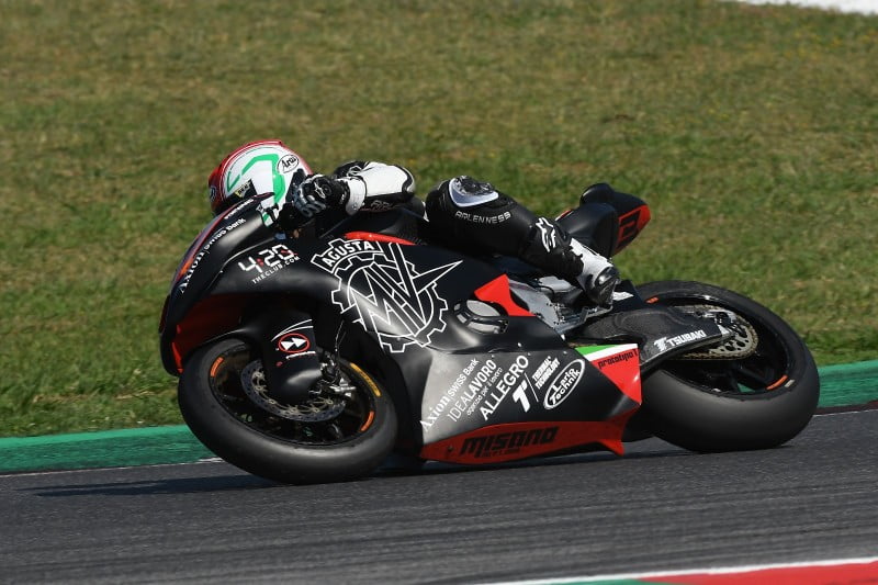 Pour la F2, dont c’est l’acronyme technique officiel, c’était le shake down, et il était donc inutile à ce stade du travail de parler de chronos. Dans le Championnat du Monde 2019, la MV Agusta sera dirigée par l’équipe Forward de Giovanni Cuzari qui, après tant d’efforts, a réussi à couronner le rêve de remettre la légendaire marque italienne sur les rails. La F2, par règlement, utilisera le Triumph 675 à trois cylindres unique « mais la catégorie intermédiaire n’est que la première étape, l’objectif étant d’atteindre le sommet », confie Cuzari.