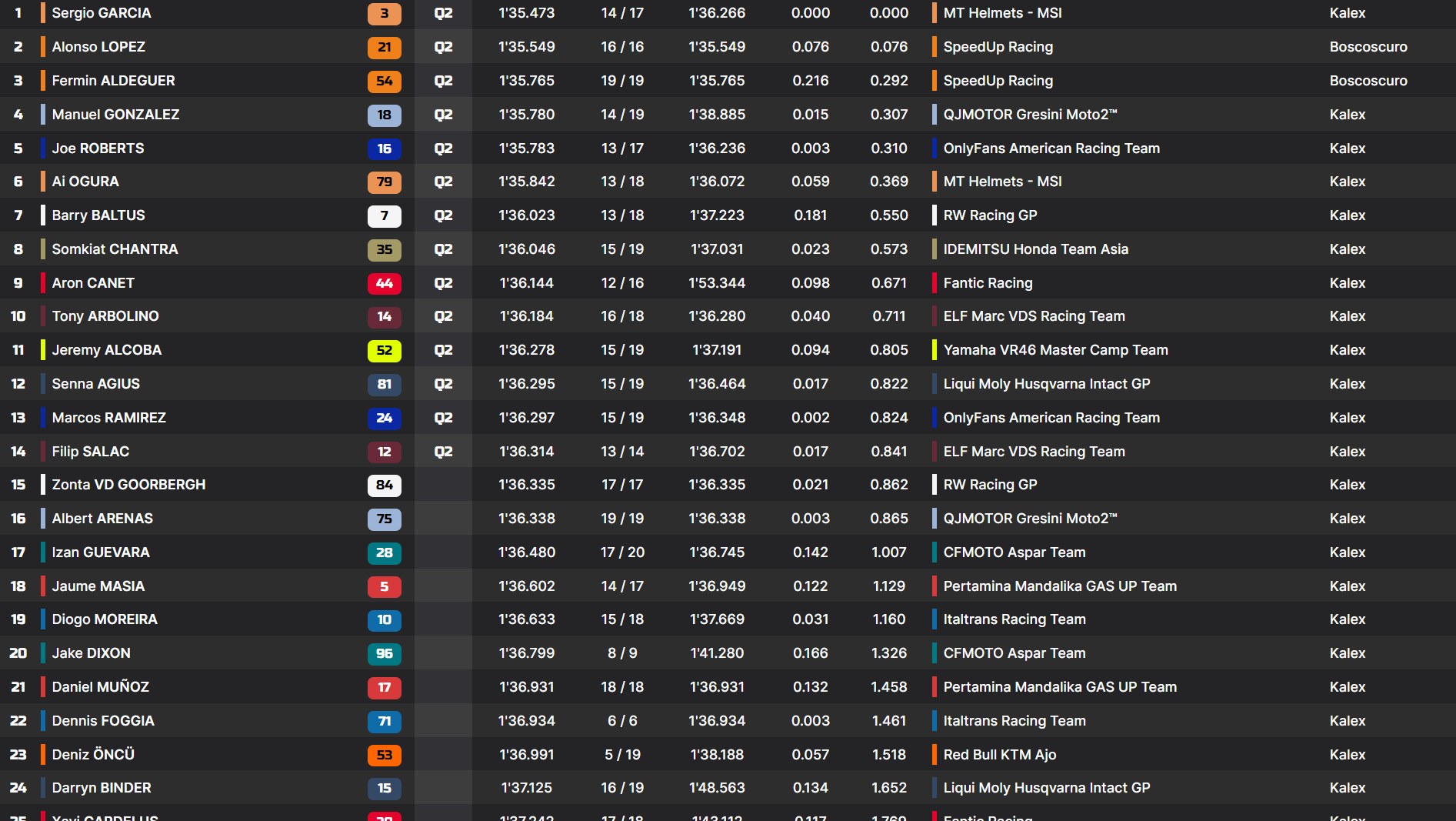 | Q1 | 1’36.654 Fermín Aldeguer | |
