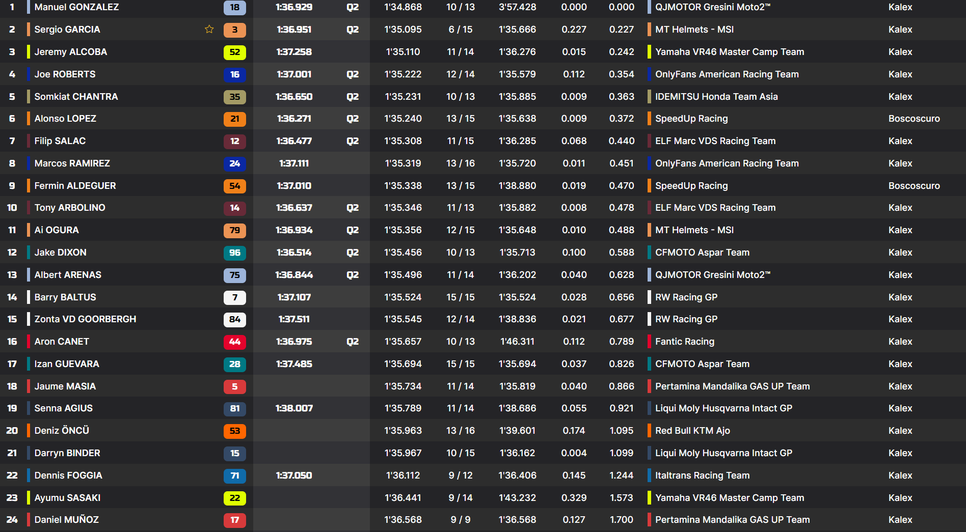 | Q1 | 1’36.654 Fermín Aldeguer | |