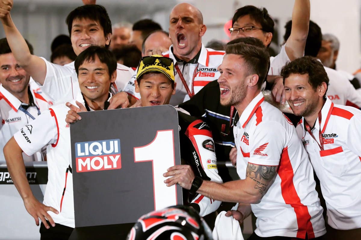 Ce début de saison 2019 de Grand Prix a on ne peut mieux débuté pour le team manager du team Asia Honda qu’est Hiroshi Aoyama. L’ancien champion du monde en 2009 de feue la catégorie 250 a remporté neuf Grand Prix. Il est aussi, à 36 ans, en retraite de l’activité de pilote qui s’est terminée avec une fracture de la poitrine dans un accident à Silverstone lors de la saison 2010. Il roulait alors pour le team Interwetten Honda. Mais grâce à son pilote de Moto3, Toba, il a retrouvé le goût de la victoire par le biais du Moto3. Il donne aussi une indication singulière sur l’implication de ses troupes en Moto2…