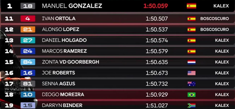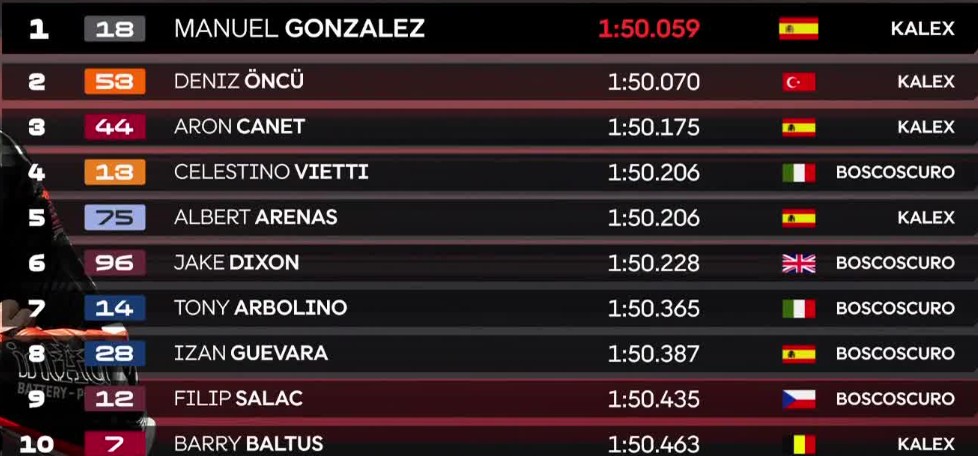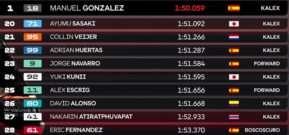 FP 1’51.311 Fermin Aldeguer 1’50.589 Manuel Gonzalez