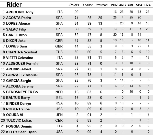 La première ligne sera composée de Arón Canet, Pedro Acosta et l’inoxydable Sam Lowes.