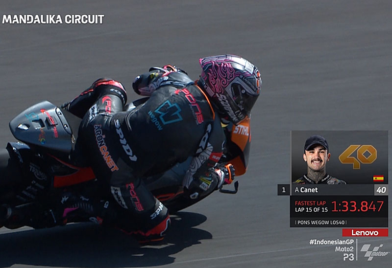 Immédiatement, Somkiat Chantra prend l’avantage alors que Pedro Acosta se fait chahuter à l’extérieur du premier double-droit ! Le voilà septième, tandis que Tony Arbolino n’est que douzième. Jake Dixon est également l’auteur d’un bon envol. Alonso López est en feu mais devra passer deux fois par le long lap.