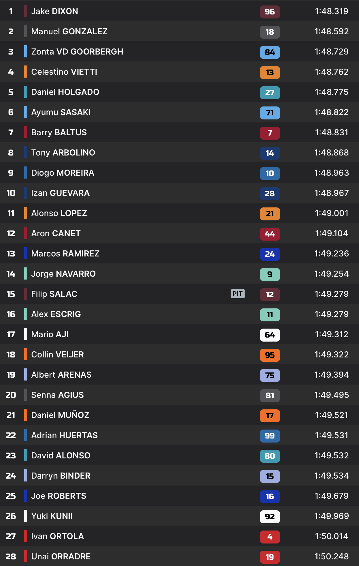 P2 1’50.672 Aron Canet 1’48.319 Jake Dixon