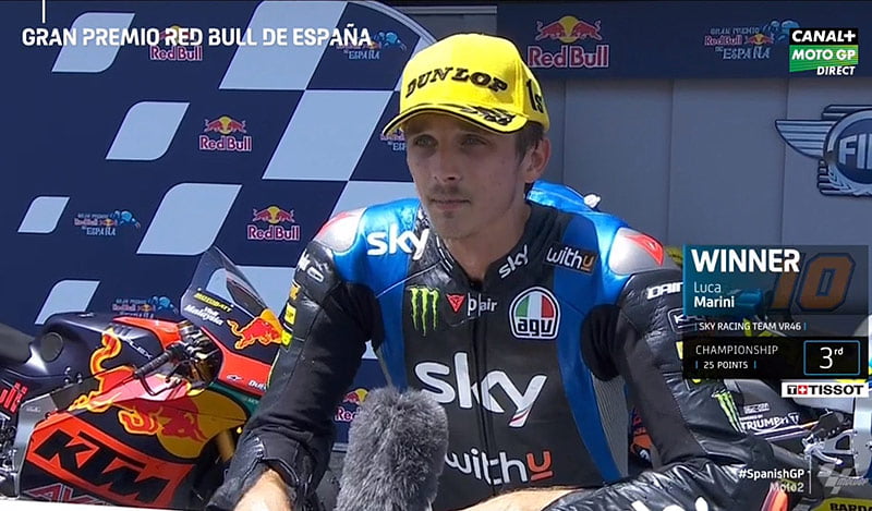 Luca Marini (1er) : « Je suis très content, on avait un bon rythme et on a fait du très bon travail dès mercredi et à partir de vendredi, lors des essais libres. J’ai beaucoup roulé en condition de course avec les pneus de course et j’ai regardé combien de tours ils tenaient. J’ai fait la même stratégie en course mais le rythme était beaucoup plus lent. Je suis très content de ce résultat. Je pense que ça aurait été la même chose au Qatar si je n’avais pas eu le problème avec mon pneu avant. J’ai surveillé le rythme de Tetsuta dès les premiers jours car il était compétitif. C’est important de remporter des courses car c’est fantastique. »