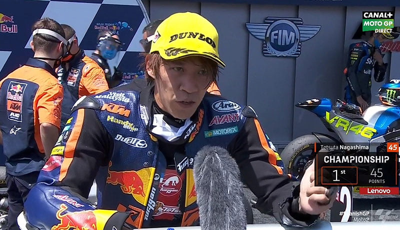 Tetsuta Nagashima (2e) : « Je sais que c’est une saison très dure, je l’ai compris dès le début. J’ai essayé d’attaquer dès le début pour rester devant et j’ai tenté durant toute la course de revenir sur Marini. Mais à quatre ou cinq tours de l’arrivée j’ai changé d’état d’esprit et je me suis dit « ok, je vais me contenter de ma place ». Mais je suis très content et j’aime vraiment ce sentiment. »