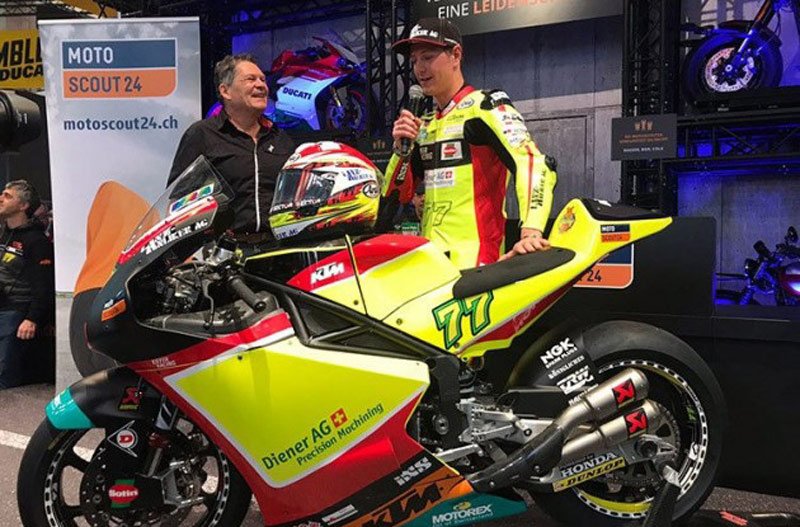 Le salon de la moto Swiss Moto à Zurich a été l’occasion pour Kiefer Racing de se présenter avant la saison 2018 : après les nombreux problèmes (en particulier économiques) qui ont commencé avec la mort prématurée du propriétaire Stefan Kiefer, l’équipe est passée entre les mains de son frère Jochen, et la présence en Championnat du Monde Moto2 a été assurée avec une seule moto, une KTM, confiée au Suisse Dominique Aegerter.Le stand du sponsor « MotoScout24 » a permis de montrer et présenter la nouvelle livrée de la moto avec laquelle l’équipe fera face à 2018, bien que les problèmes sont loin d’être terminés : si Kiefer et Aegerter (ce dernier avec une opération de crowdfunding sur le site ibelieveinyou.ch) ont réussi à équilibrer les budgets de l’équipe, il manque toujours un sponsor principal. « Si nous trouvons d »autres sponsors, nous pourrons payer un salaire à Domi, ce qui n’est pas prévu puisque nous ne pouvons pas nous le permettre » a dit à ce sujet Jochen Kiefer.