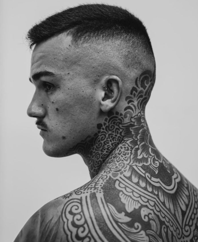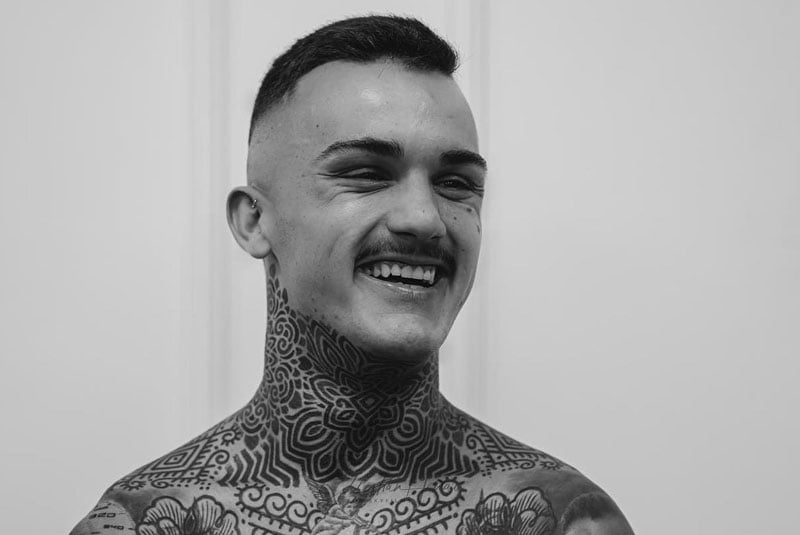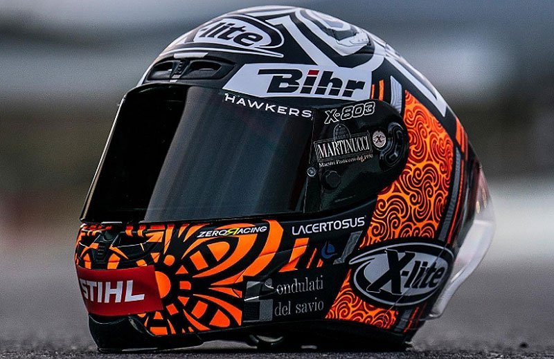 Le garçon est déjà une œuvre d’art à lui seul, mais Arón Canet a décidé d’en rajouter une couche en décorant son casque dans la pure lignée des innombrables tatouages graphiques qui ornent son corps.