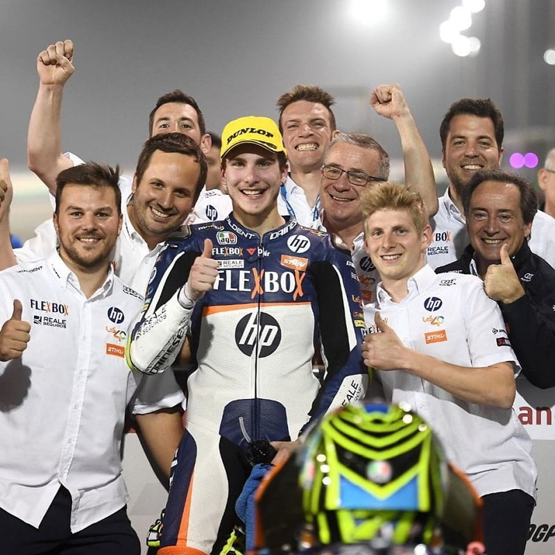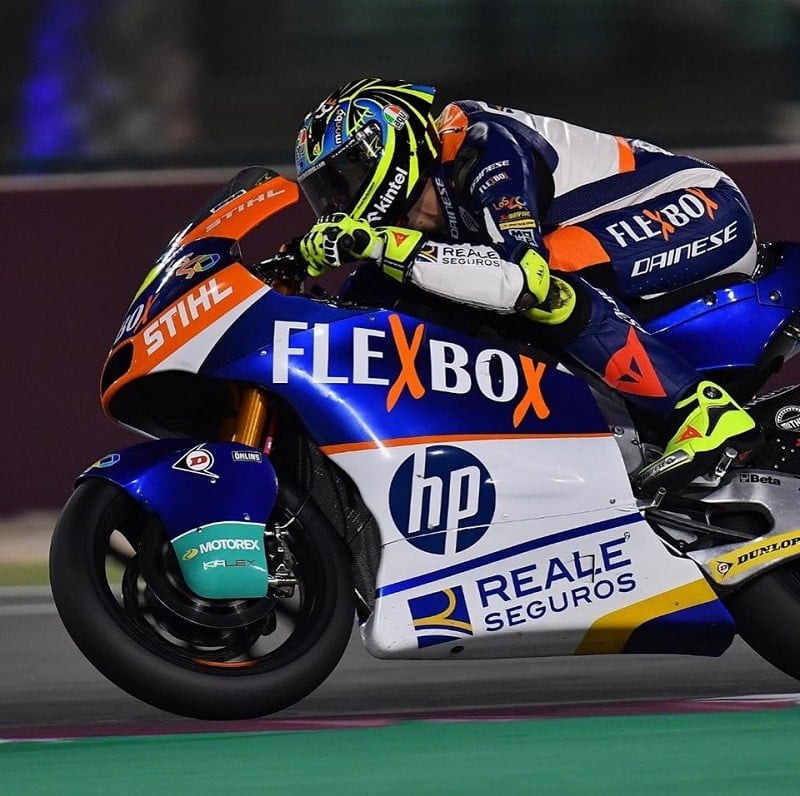 Brillant vainqueur de la Red Bull MotoGP Rookies Cup en 2011, le pilote transalpin de Montecosaro n’a ensuite passé qu’une brève saison en Moto3 en 2013 chez Fausto Gresini, avant de monter en Moto2 l’année suivante dans la même « squadra ». Trois années chez Forward Racing s’ensuivront, avec une victoire en 2016 sur une Kalex à Misano, puis trois années chez Sito Pons avec la première place du GP d’Espagne en 2018 et 2019, ainsi qu’au Qatar et en Argentine l’an dernier.