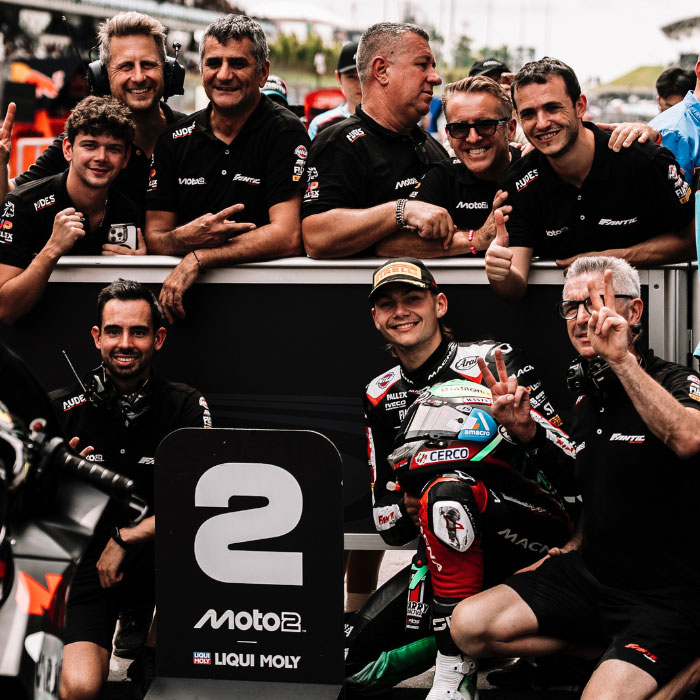 Barry Baltus : « Ce fut un week-end incroyable, mais honnêtement, l’un des dimanches les plus difficiles de ma carrière. Après ce qu’il s’est passé en Moto3, c’était vraiment dur de rester concentré et de courir quelques heures plus tard. Ce podium est pour eux – j’espère que tous ceux qui étaient impliqués vont bien. Il faisait une chaleur étouffante et gérer le pneu avant était un vrai défi. Avec l’équipe, nous avons travaillé intelligemment et j’ai compris exactement ce que je devais faire sur la moto. Je suis resté calme quand l’avant a glissé, j’ai géré la situation et je me suis battu avec un bon rythme jusqu’à la fin. Terminer à nouveau sur le podium est génial, et c’est un résultat fantastique pour le championnat. Si quelqu’un m’avait dit l’année dernière que je me battrais pour le titre, je l’aurais pris pour un fou. Nous sommes toujours dans la course et c’est incroyable. Ce résultat est pour ma famille, ma copine et mon équipe. Maintenant, il est temps de se ressourcer avant les deux dernières épreuves. »