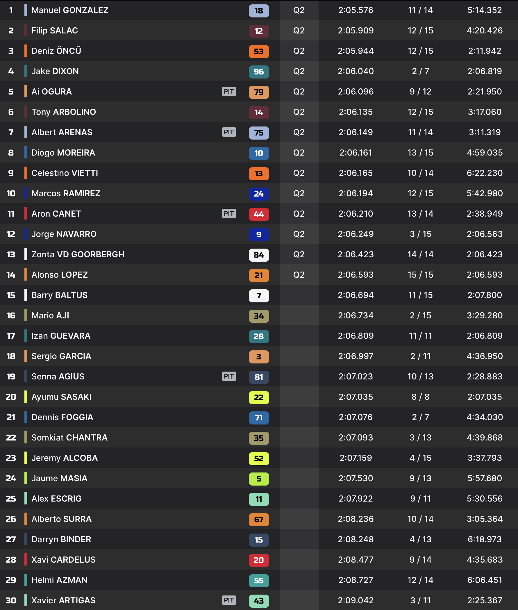 | Q2 | 2’05.288 Fermin Aldeguer | |