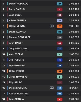 Manuel Gonzalez n’est que 6e sur la grille de départ, Aron Canet 8e. Diogo Moreira commet une erreur dans son dernier tour rapide, et ne se qualifie que 16e sur la grille de départ. Barry Baltus est donc le mieux placé des 4 pilotes qui peuvent encore prétendre au titre mondial.