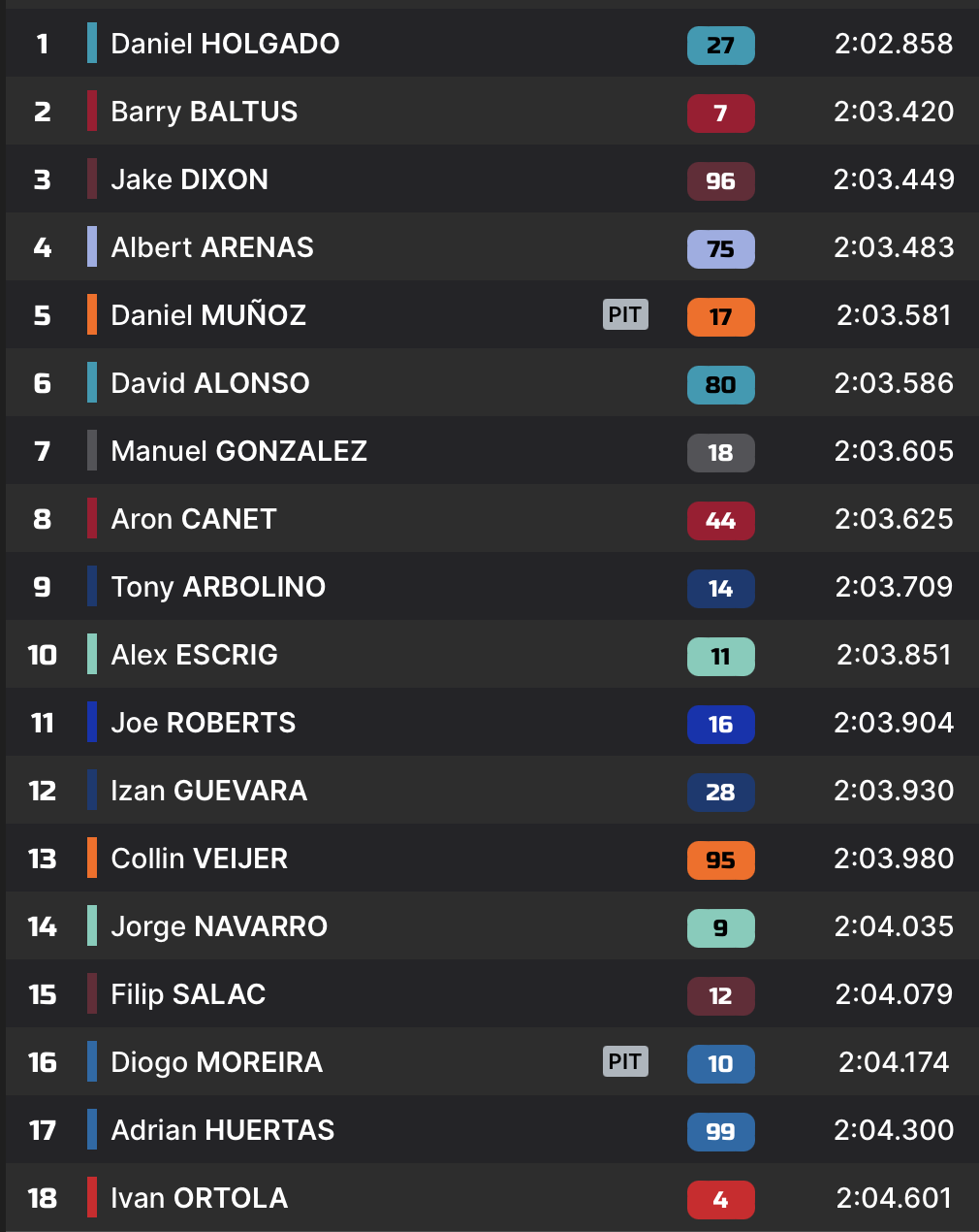 FP2 2’04.775 Albert Arenas 2’03.633 Jake Dixon