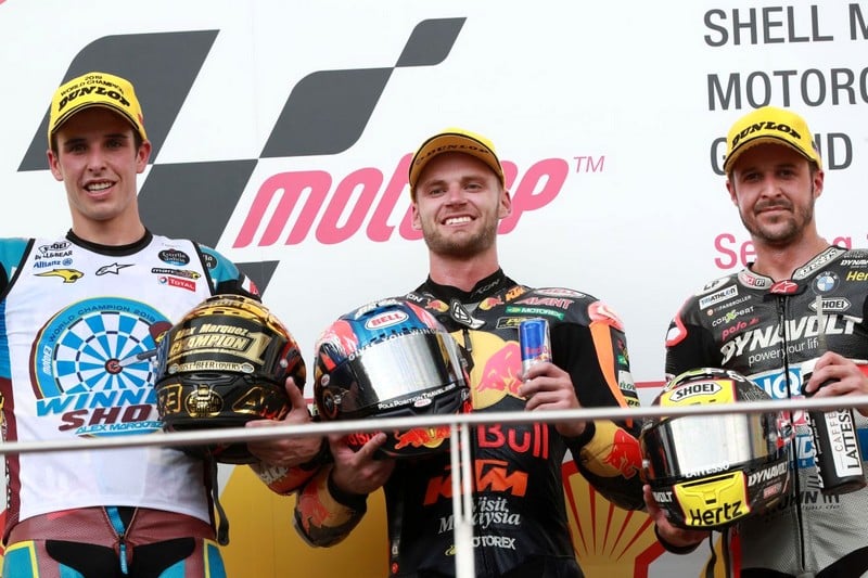 Si Tom Lüthi était le principal pilote à pouvoir empêcher Álex Márquez d’être titré en Malaisie, Brad Binder avait lui aussi des cartes en main, même s’il était un peu plus loin au Championnat. Le Sud-Africain a tout donné et a réalisé une course très solide depuis la sixième place sur la grille pour aller s’imposer au terme des 18 tours de course.