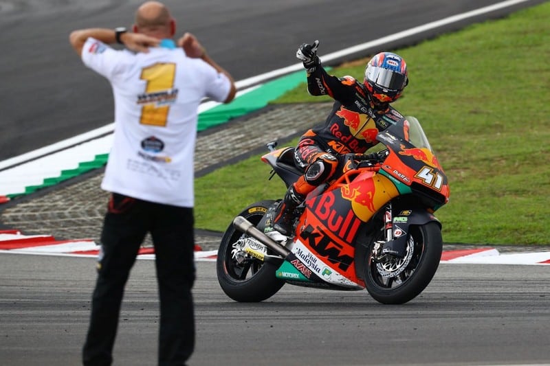 Désormais, c’est le titre de vice-Champion du monde qui se jouera lors du dernier Grand Prix, à Valence, puisque Binder l’a repris provisoirement à Lüthi pour quatre points. Jorge Navarro est pour sa part mathématiquement hors-jeu. Une chose est sûre, le pilote KTM et le représentant Dynavolt Intact GP donneront tout pour remporter cette seconde place du classement général.