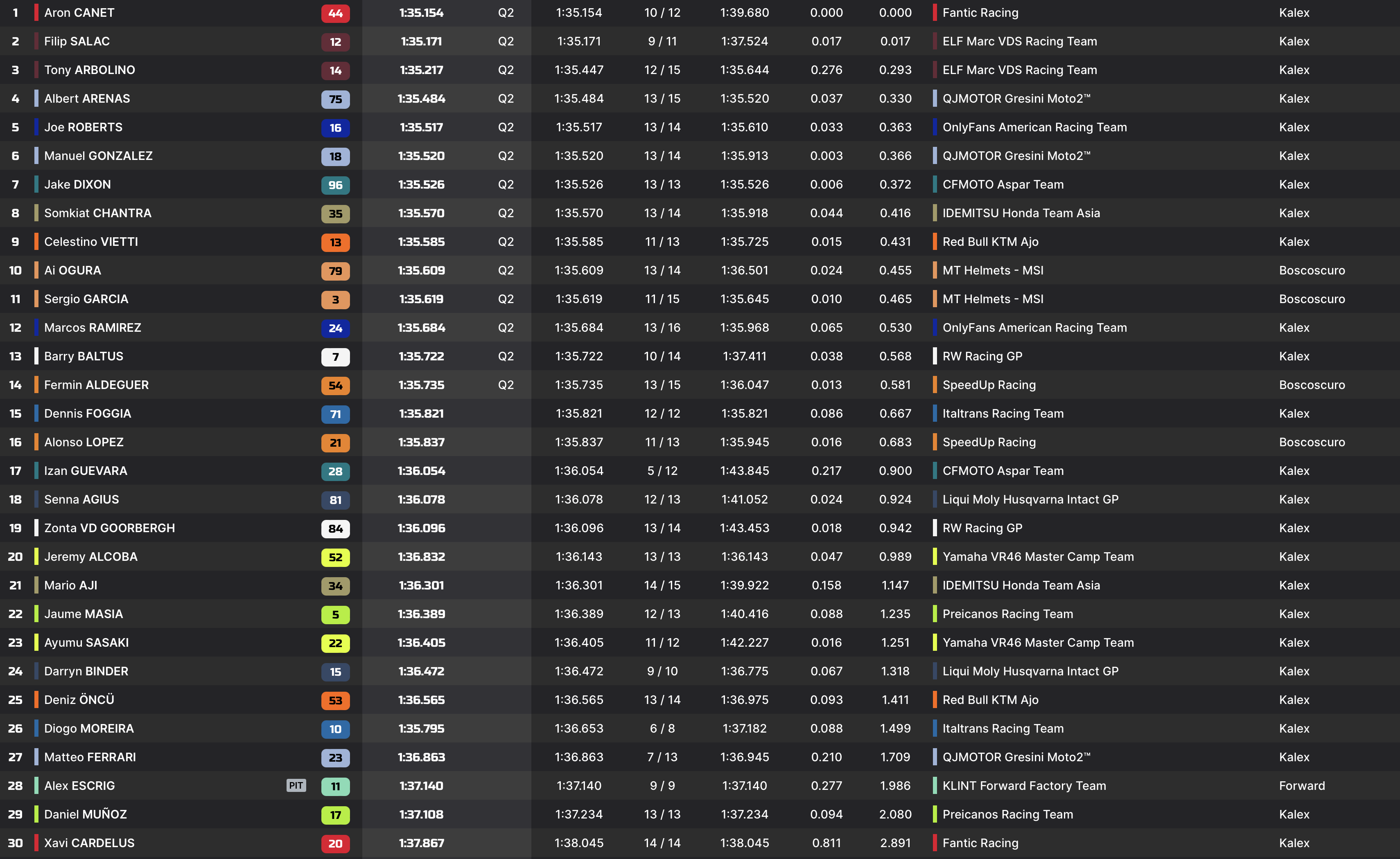 | Q2 | 1’35.229 Tony Arbolino | |