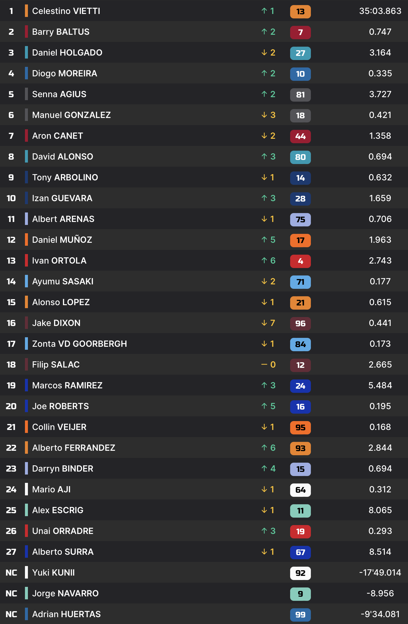 Course Ogura, Canet, Arbolino (Voir ici) Vietti, Canet, Arbolino (Voir ici) Vietti, Baltus, Holgado