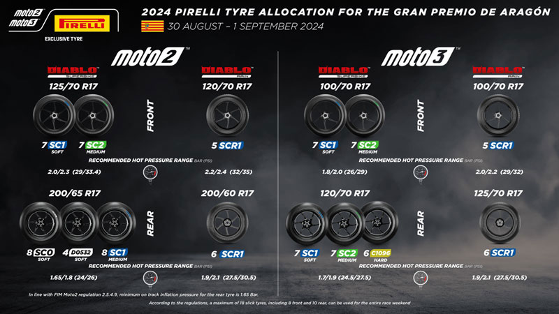 Le nouvel asphalte du MotorLand Aragón semble être particulièrement abrasif, par conséquent les pilotes Moto2™ et Moto3™ disposeront de plus de pneus et de composés que l’allocation standard Pirelli.