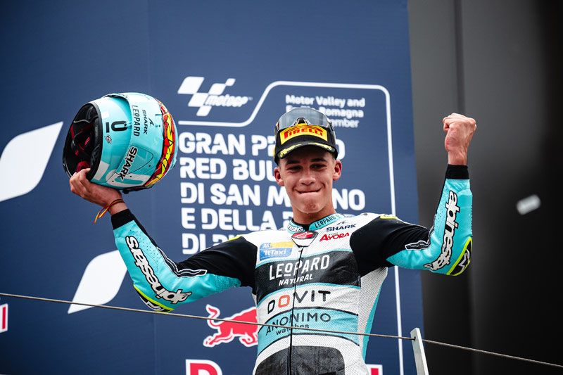 À l’occasion du Grand Prix de Saint-Marin et de la Riviera de Rimini, le pilote japonais Ai Ogura (MT Helmets-MSI/Boscoscuro) a remporté sa troisième victoire de la saison en Moto2™, tandis qu’en Moto3™, la victoire est revenue à l’Espagnol Ángel Piqueras (Leopard Racing/Honda).