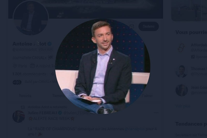 Aujourd’hui, le nom a été révélé par l’Equipe, qui confirme notre information et dévoile le patronyme de Antoine Arlot, journaliste du service des sports mécaniques de Canal+ après 12 années passés sur RMC Sport.