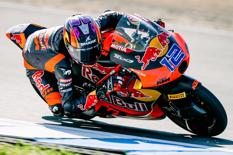 Le mardi, en Moto3, les conditions étaient nettement plus fraîches (21° dans l’air, 35°) mais également parfaites pour taquiner le record. Seuls 11 pilotes étaient malheureusement au rendez-vous, mais cela n’a pas empêché José Antonio Rueda (Red Bull KTM Ajo) de réaliser 12 tours et 2’05.374 lors de la première session, à 3 dixièmes du record absolu, devant Jacob Roulstone (Red Bull KTM Tech3).